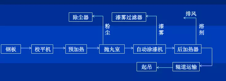 預(yù)熱是為了拋丸前將鋼板升溫,除去表面水分、部分油污,使鋼板升溫達到噴漆后的干燥。